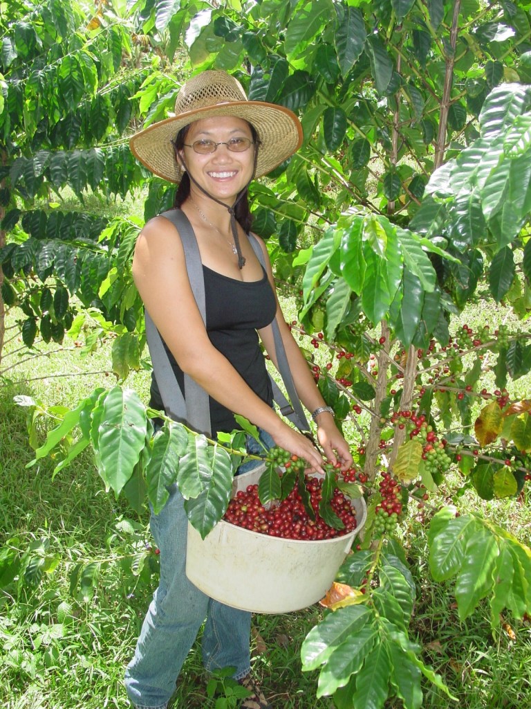 In the midst of all this construction the farm’s first coffee cherries began to ripen on the trees. Harvest season was indeed upon us! Handpicking nearly all of this first year coffee was my wife, Gigi, who somehow found the time and energy to lend a hand after her long days of teaching math at the local community college. It is a well documented fact that most coffee farms in Kona over the last century were operated in the same fashion. Most families saw moms and dads holding down normal day jobs, the farm work was something that occurred after work or on the weekends. It wasn’t until the recent craze for specialty coffee that farming coffee in Hawaii could be seen as anything more than a way to supplement a family’s income.