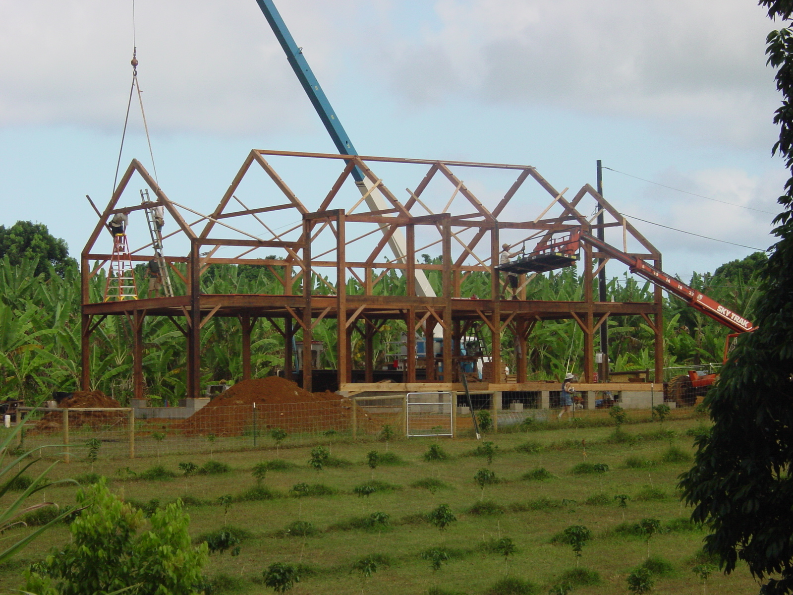 We had come so far on a journey that had begun with a design session with architect Kim Brown of Waterbury Center, Vermont on a snowy night in the far northern reaches of New England; stretched through the months of arranging permits, suppliers and subcontractors, and finally led us to this sight — our barn standing tall with banana, lychee and coffee trees and Kauai’s blue sky in the background.